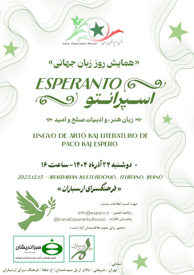 اطلاع رسانی چهارمین کنفرانس بین المللی پداگوژی و اسپرانتولوژی «آموزش پژوهی» و «اسپرانتو پژوهی» تابستان 1404 فراخوان ارسال مقالات و تجربیات زیسته (گواهی پذیرش و کسب رتبه معتبر 2 زبانه) کمیتهی آموزش و پژوهش انجمن اسپرانتو ایران و اتحادیهی بینالمللی معلمان اسپرانتودان (شاخه ایران) «IRLEI»، از کلیه اساتید، معلمان و…